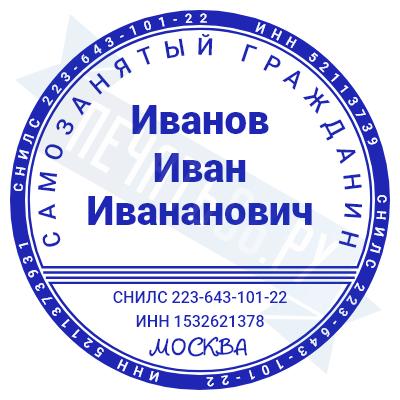 - Печать самозанятого на металлической оснастке Крымская-3 чернение с гербом D40, 40мм по цене 2659 рублей и еще 67 видов печатей для самозанятых